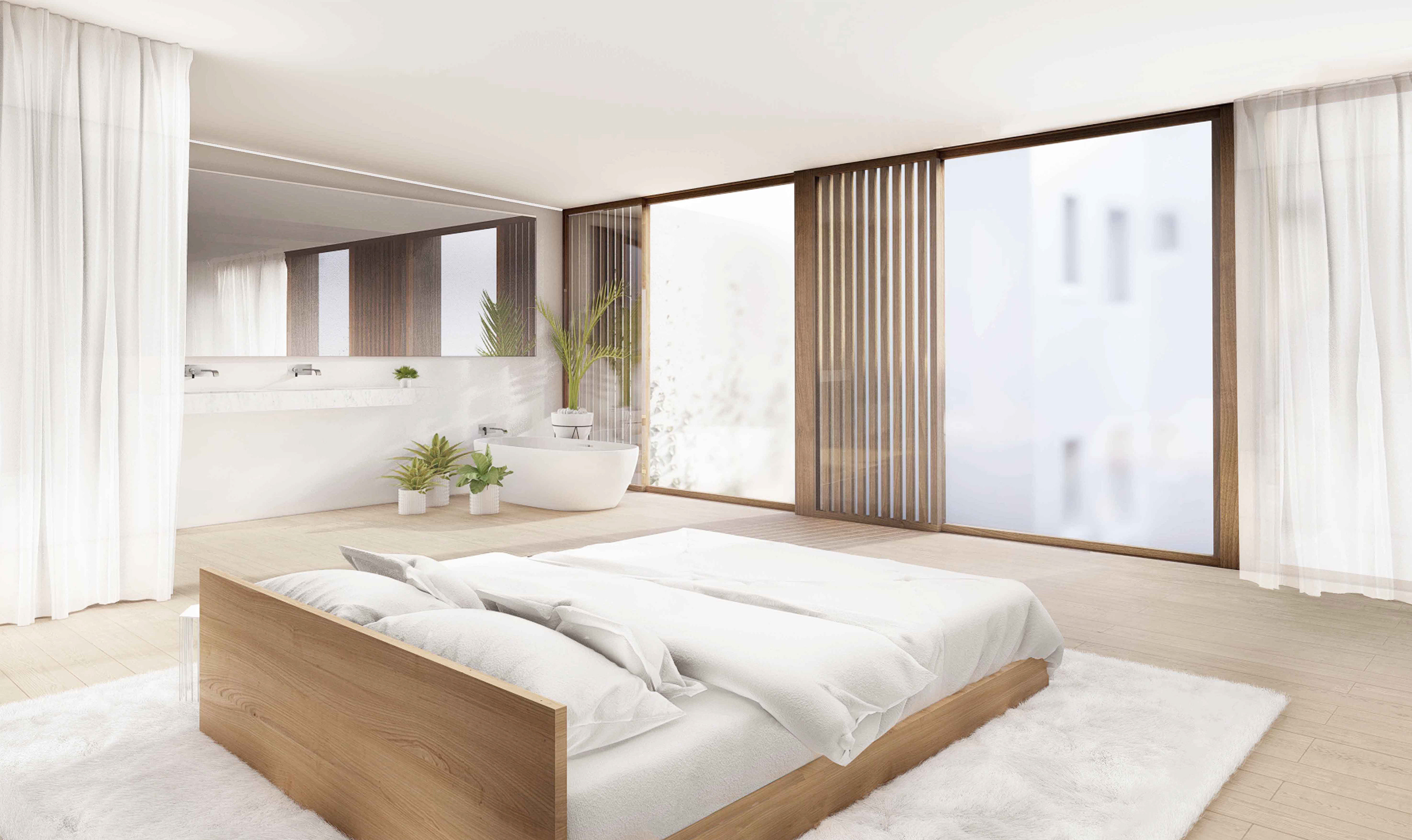 Si l’ouverture sur l’extérieur contre l’enclavement créée par la configuration du site, la préservation de l’intimité des usagers a suscité une attention particulière des architectes. Pour cela, différents dispositifs ont été mis en place, dont des parois ajourés en bois (que ce soit la clôture du jardin au RDC ou les claustras extérieurs placés devant les baies vitrées), des rideaux toute hauteur permettant d’ajuster le degré d’occultation souhaité (fermeture totale ou partielle avec des voilages doublés de tissus occultants), et du verre sablé au niveau des baies vitrées afin d’empêcher une visibilité directe sur les bâtiments voisins.