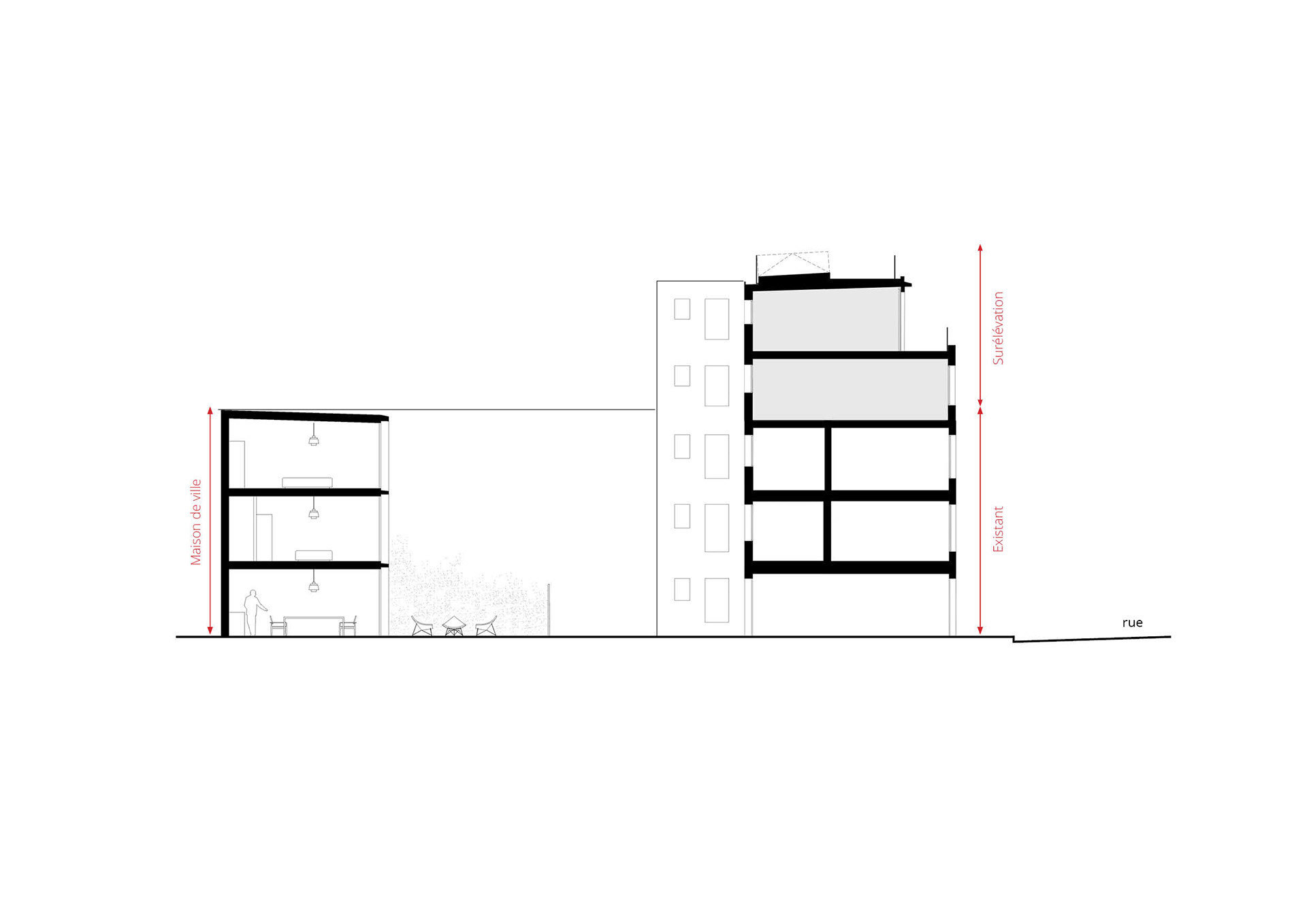 Programme : Rénovation et surélévation immeuble + maison de ville neuve