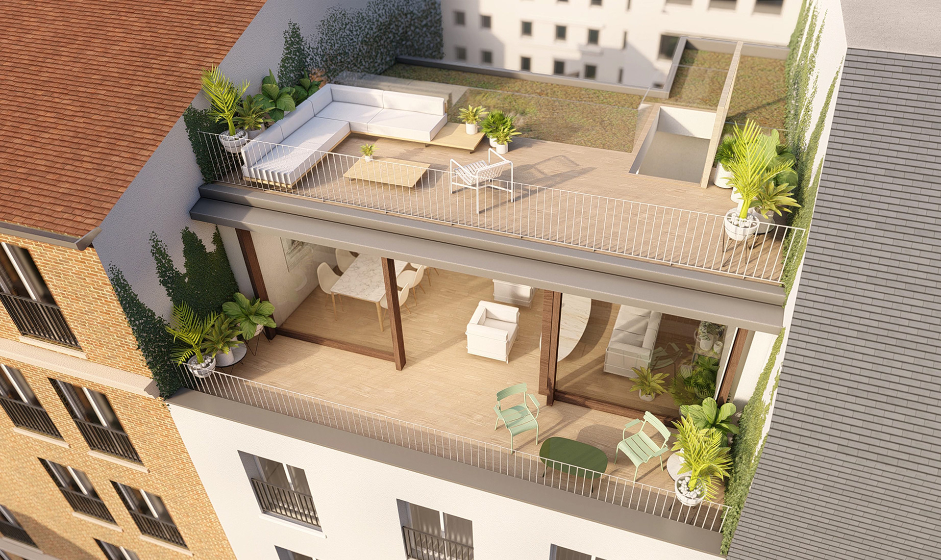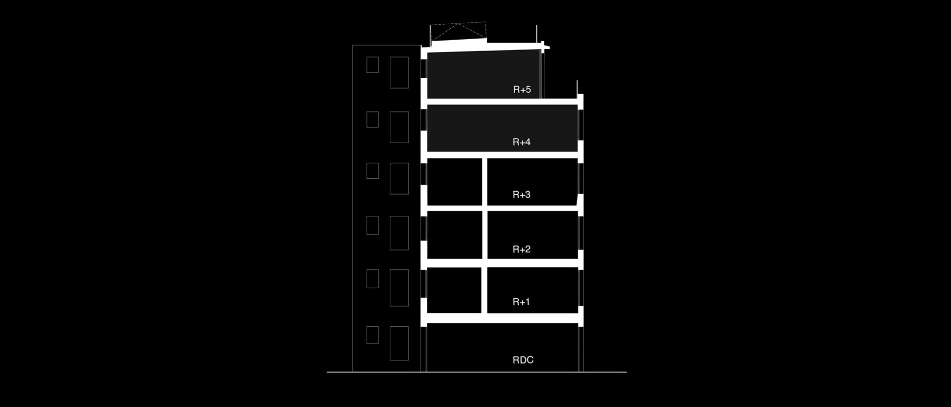 Programme : Surélévation d'immeuble par la création de 2 niveaux supplémentaires et un toit-terrasse accessible
