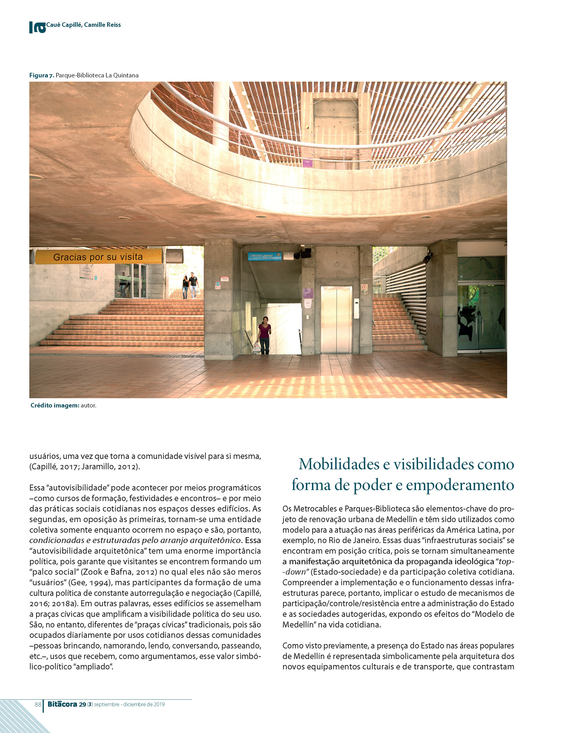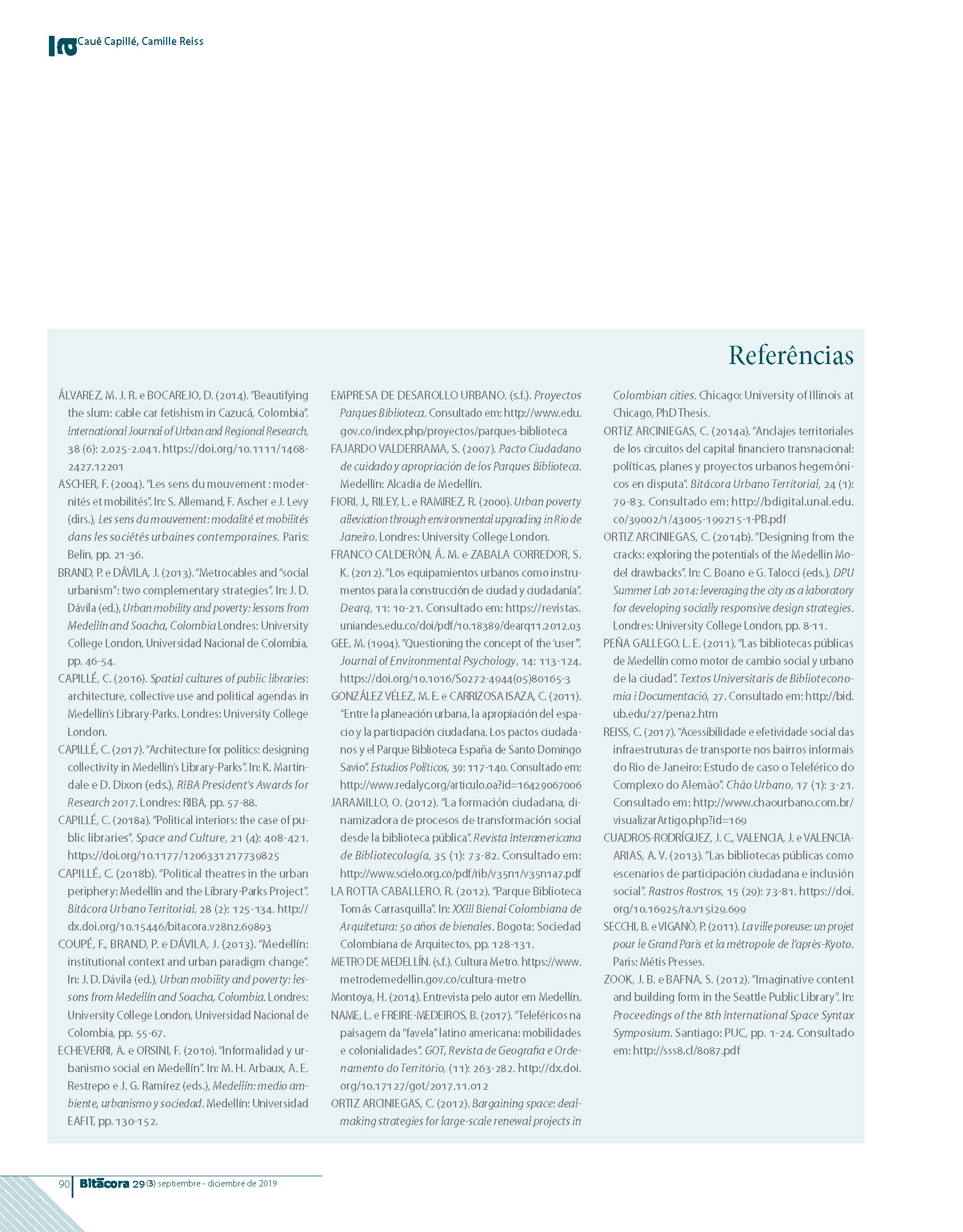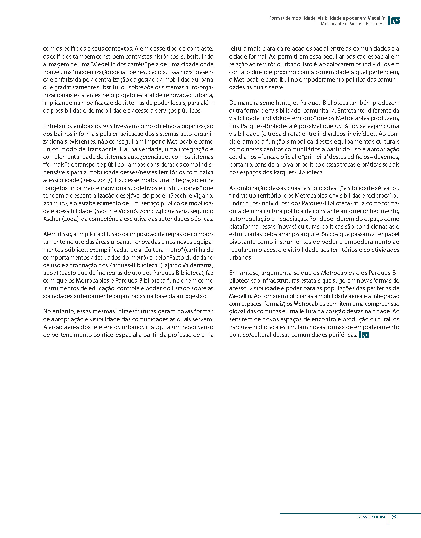« Formas de mobilidade, visibilidade e poder em Medellín: Metrocable e Parques-Biblioteca », Revue Bitacora Urbano Territorial, Colombia, vol. 9, n°3, sept 2019, disponible
