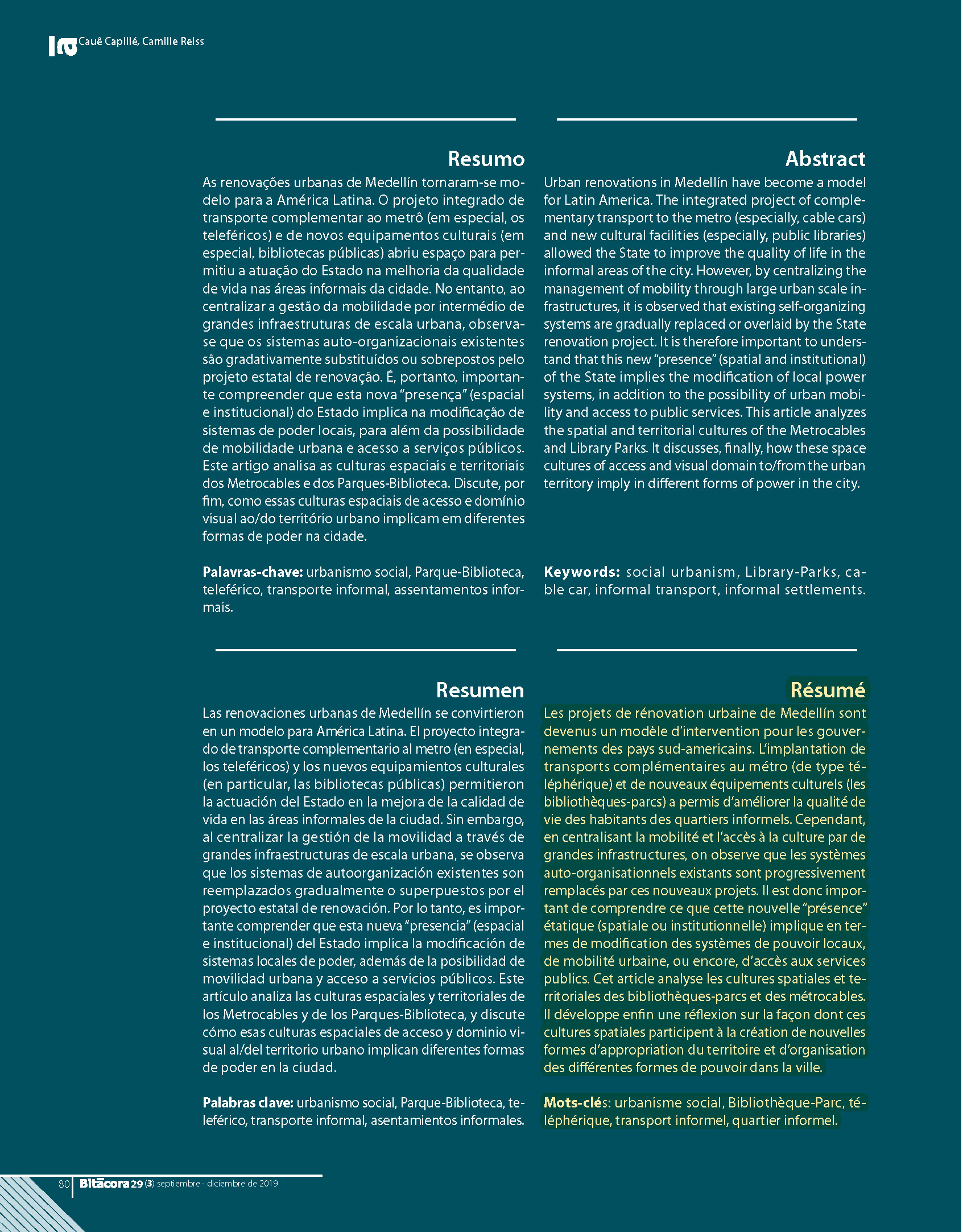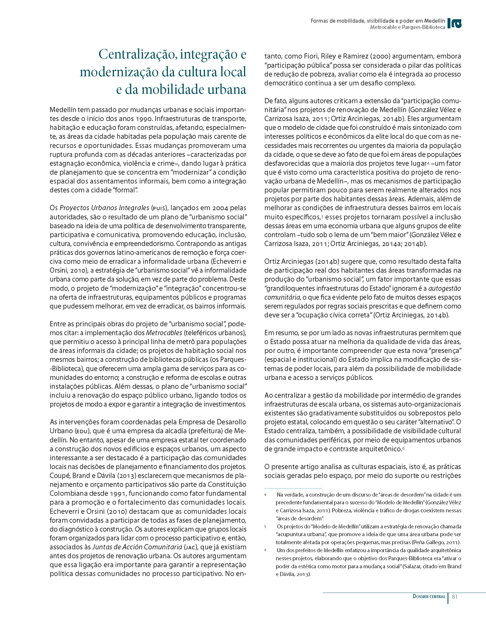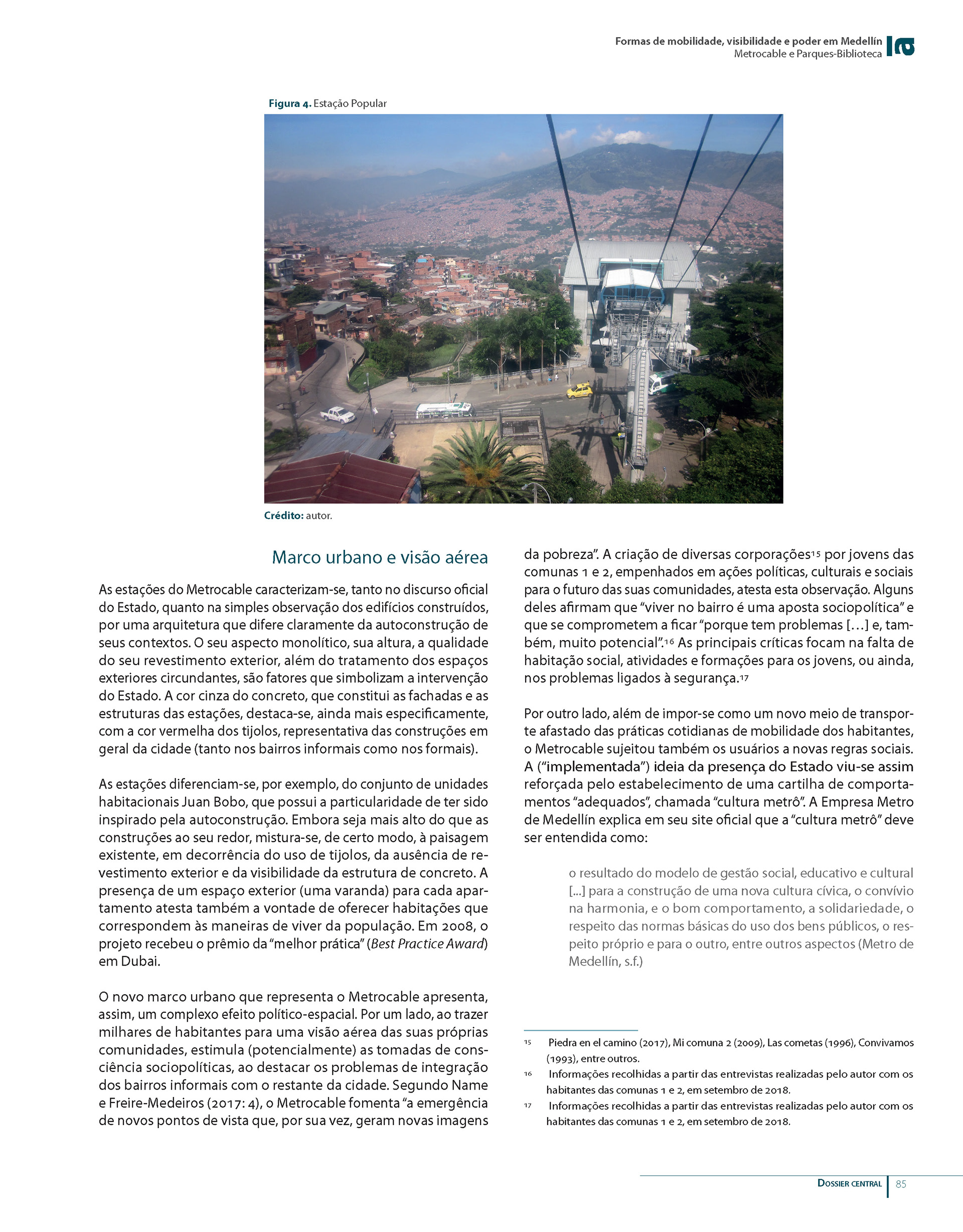 « Formas de mobilidade, visibilidade e poder em Medellín: Metrocable e Parques-Biblioteca », Revue Bitacora Urbano Territorial, Colombia, vol. 9, n°3, sept 2019, disponible